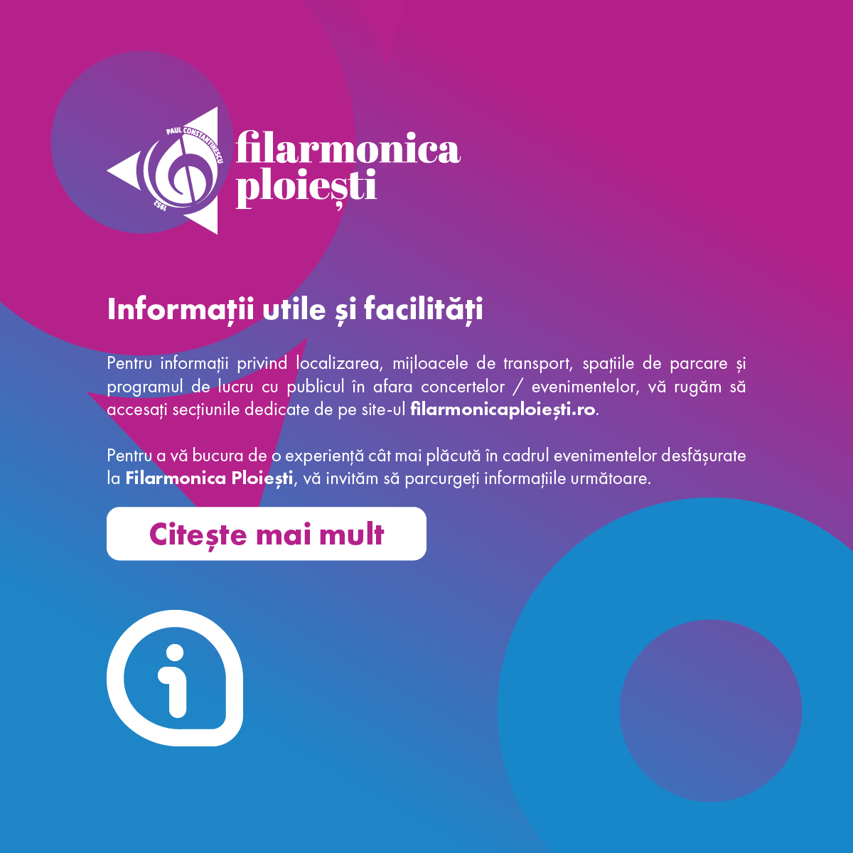 Atât Sala “Ion Baciu”, cât și Sala Mică a Filarmonicii “Paul Constantinescu” Ploiești, pot fi închiriate pentru evenimentele dumneavoastră la tarife foarte avantajoase.