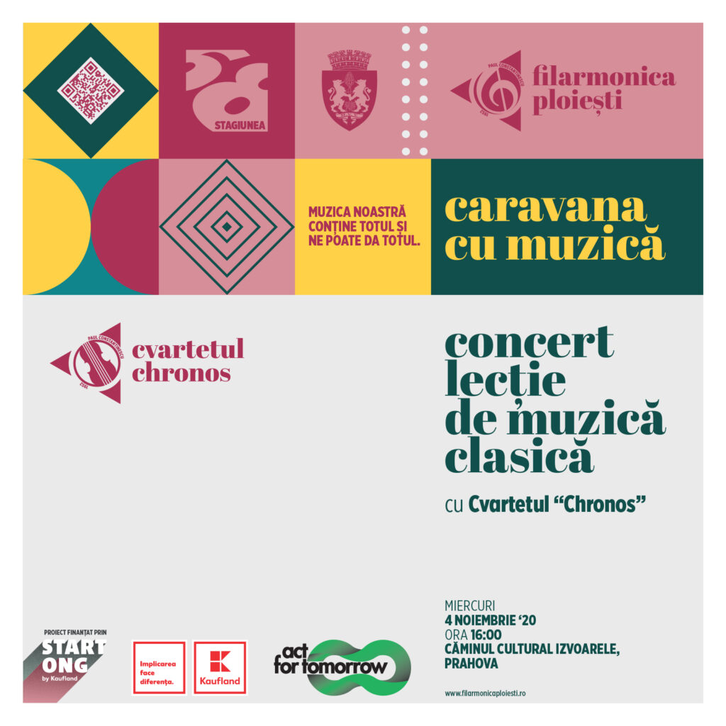 Cvartetul Chronos, ansamblul compus din Lucian Duță – vioara I, Silviu Gherasimescu – vioara a II-a, Georgiana Frîncu – violă și Andrei Frîncu – contrabas prezintă elevilor participanți un concert lecție de muzică clasică.